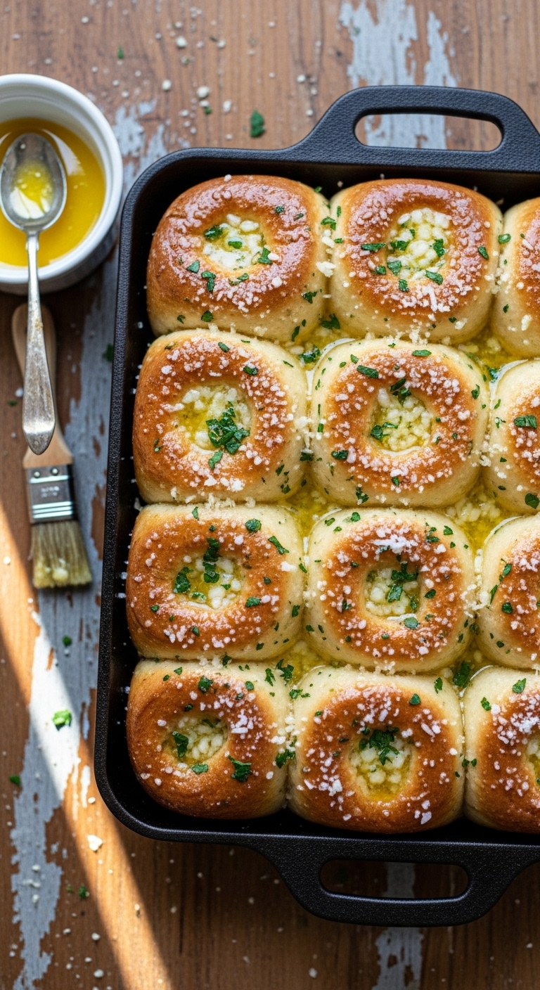 - Shape: Roll dough into a rectangle ~12×16 inches. Cut into 6 equal strips. Layer strips with cheese mix between each, stack, then cut stack into 6 cubes. Place cubes into a greased cast-iron skillet, seams down.