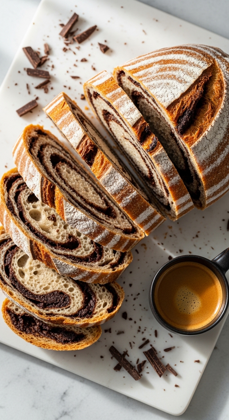 This Dark Chocolate Swirl loaf turns sourdough into a dessert-worthy bread. Rich dark chocolate marbled through the crumb gives controlled sweetness and a dramatic look. It’s wonderful for brunch or dessert toast. Expect bittersweet chocolate pockets and a slightly chewy, tangy crumb.