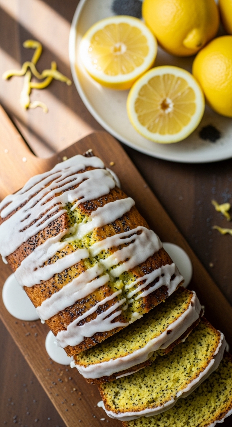 Slice and serve with a dollop of ricotta or honey. Garnish with lemon zest and extra poppy seeds. Pair with Earl Grey tea or sparkling wine. Store covered at room temp up to 3 days, or freeze slices. Great for spring brunches and showers.