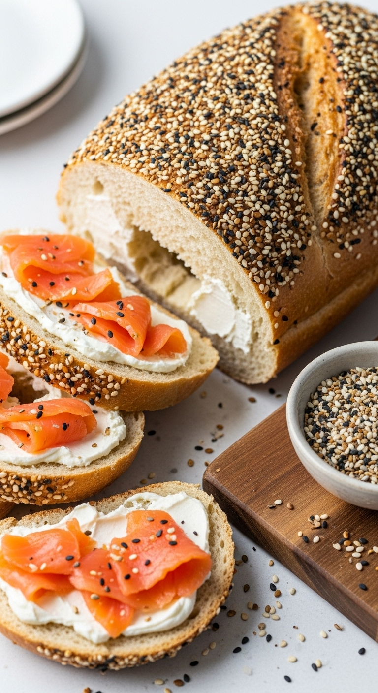 Serve toasted with cream cheese and smoked salmon or avocado. Garnish with capers and thinly sliced red onion. Pairs with coffee or lox platters. Store in airtight container 2–3 days or freeze. Make mini rolls for bagel sandwiches using same dough.